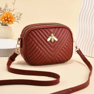 Elegant Bee Charm Bag - Quilted Shoulder Tote with Gold Ornament